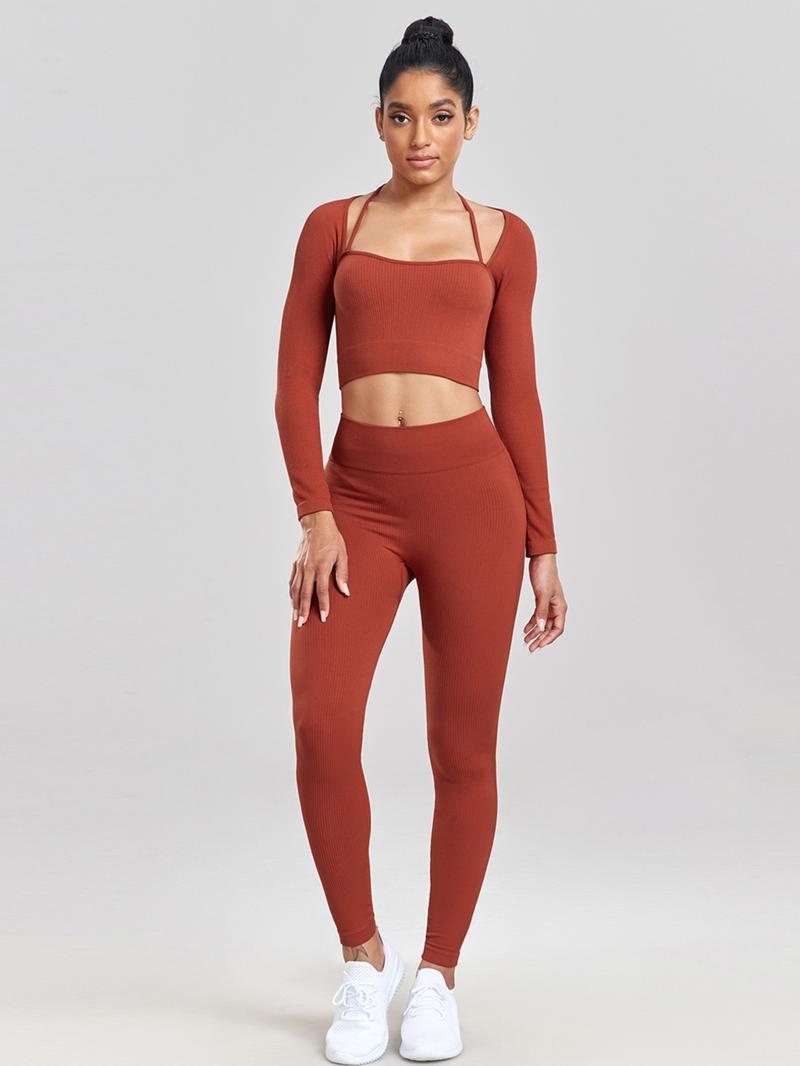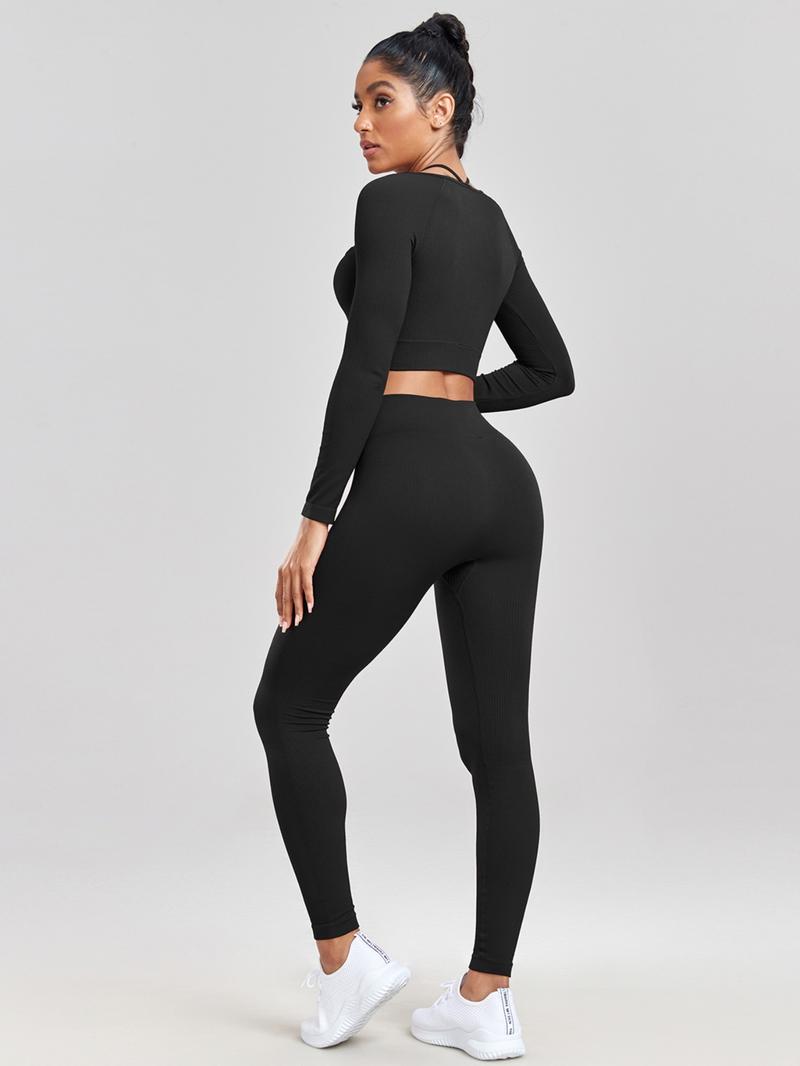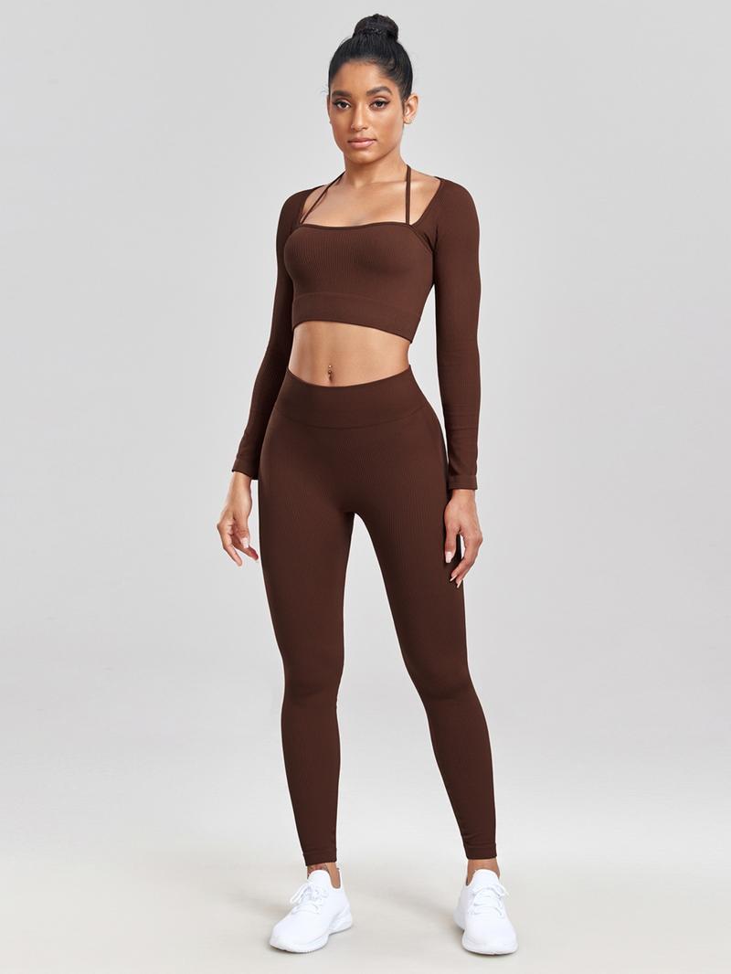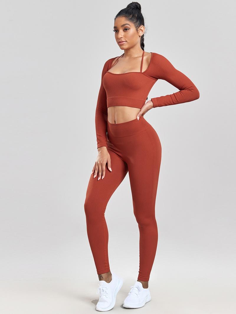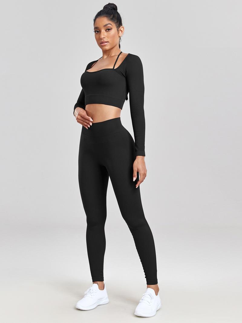 Women'S Solid Long Sleeve Crop Top & Leggings Tracksuit Set, Square Neck Tee & Yoga Pants, Women'S Sportswear for Gym Running, Minimalistic Outfit, Fall Outfits, Tracksuit for Women Fall Outfits, Workout